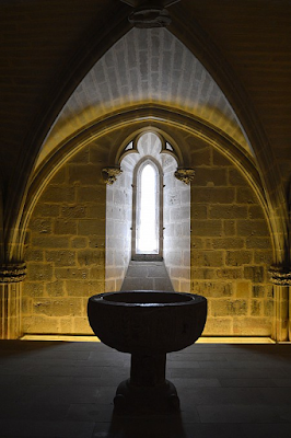 Ya escribí sobre esta pila bautismal en este blog el 16 de enero del 2009 cuando me enteré que los seis habitantes de este pueblecito de la Valdorba lograron sacar de entre las ruinas de su iglesia esta pila que quisieron conservar en lo que fue la sacristía de dicha iglesia de Benegorri convertida en capilla.